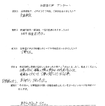 No.133 すべてしていただいたので、とても楽でした 匿名希望 様  ( / )
